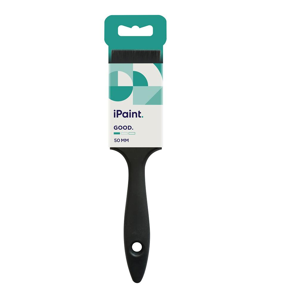 AN AFFORDABLE CONTRACTORS BRUSH, A BLEND OF SYNTHETIC AND NATURAL FILAMENTS AND A POLYPROPYLENE HOLLOW HANDLE, FOR WALLS AND CEILINGS, EASY TO CLEAN BRISTLES,