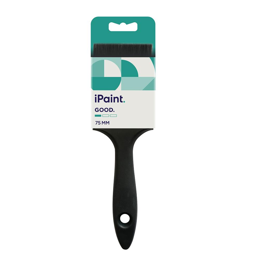 AN AFFORDABLE CONTRACTORS BRUSH, A BLEND OF SYNTHETIC AND NATURAL FILAMENTS AND A POLYPROPYLENE HOLLOW HANDLE, FOR WALLS AND CEILINGS, EASY TO CLEAN BRISTLES,